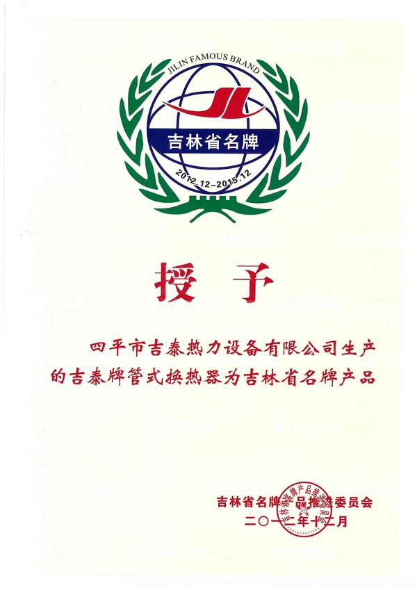 四平市吉泰熱力設備有限公司始建于1996年,坐落在全國衛(wèi)生園林城市,擁有“中國換熱器基地”美譽的四平市,公司擁有雄厚的技術力量和人才優(yōu)勢,國內生產(chǎn)設備,完善的檢測手段,是吉林省集設計、開發(fā)、生產(chǎn)經(jīng)營于一體的換熱設備生產(chǎn)企業(yè)。